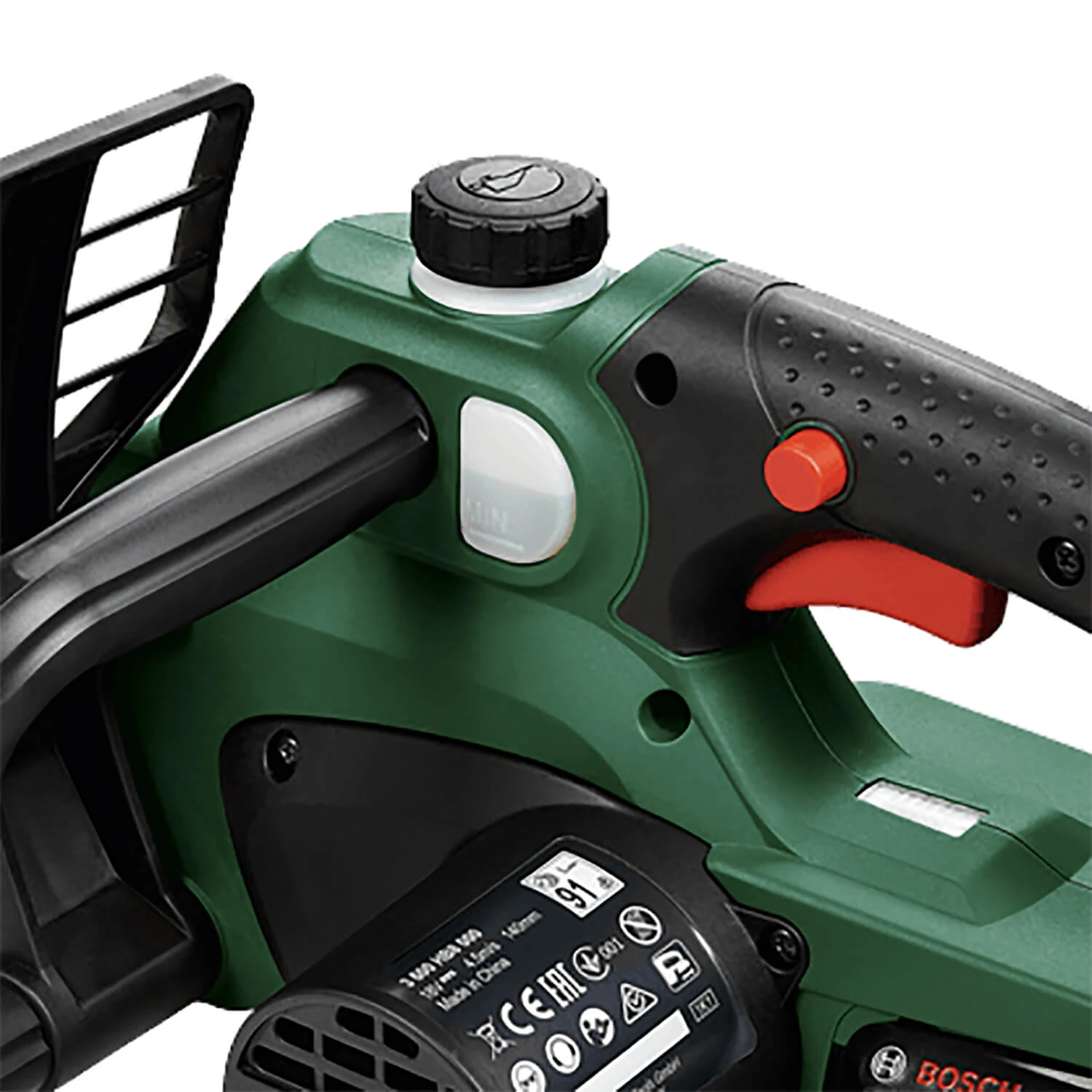It features a tip protector with grip-teeth to provide a clean undercut for minimal branch damage or to assist in clean cuts for firewood. Featuring an automatic oiling system, the chain will stay fully lubricated for ease or use. You can monitor the oil level through a viewing window and the tank holds 80ml.