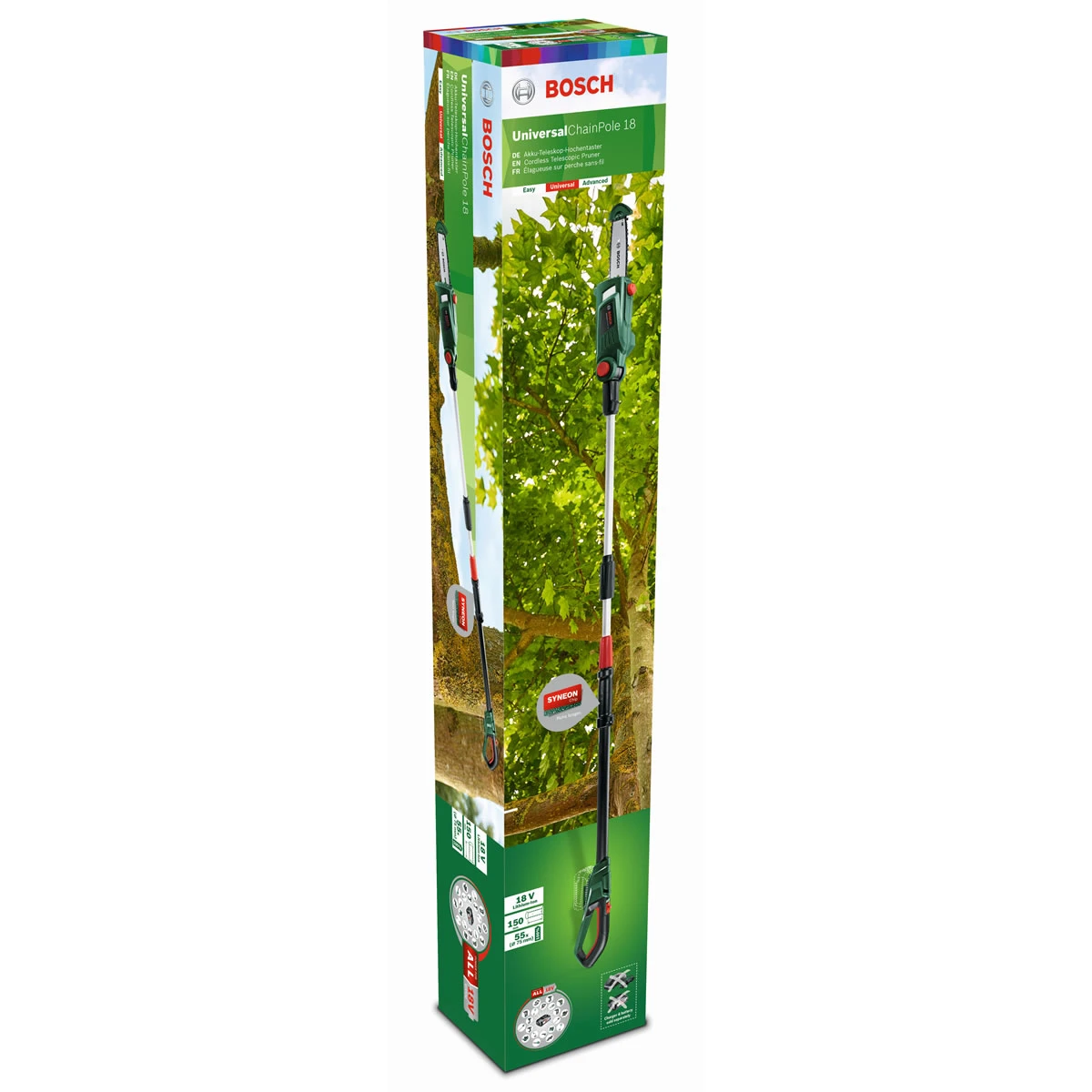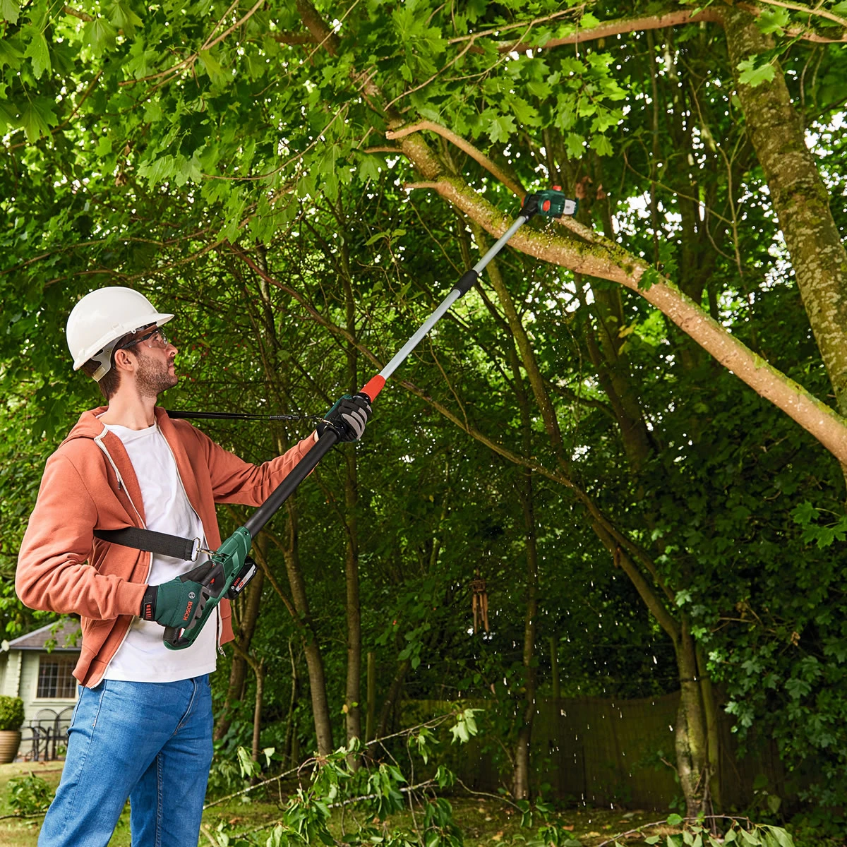 Bosch’s Universal Pole Pruner allows the user the ability to prune at heights of around 2.5 meters with both feet firmly on the floor. Removing the need for ladders, the Universal Pole Pruner used a telescopic pole design to safely and efficiently prune trees. It runs on an 18v Power4All battery