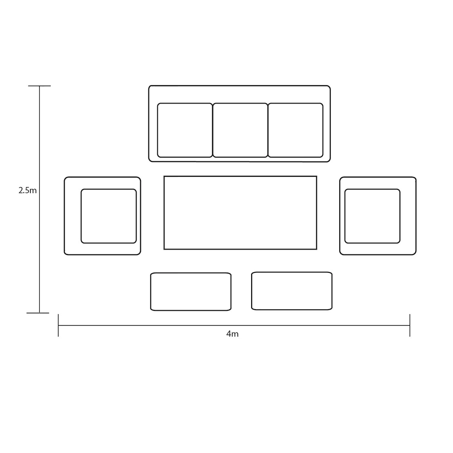 This set consists of a 3-seater sofa, 2 matching lounge chairs and 2 handy stools – to use as extra seating or as footstools (plus, a free side table). All cushions feature Weatherready family friendly, textured flint fabric, which is strong and hard wearing for frequent use.