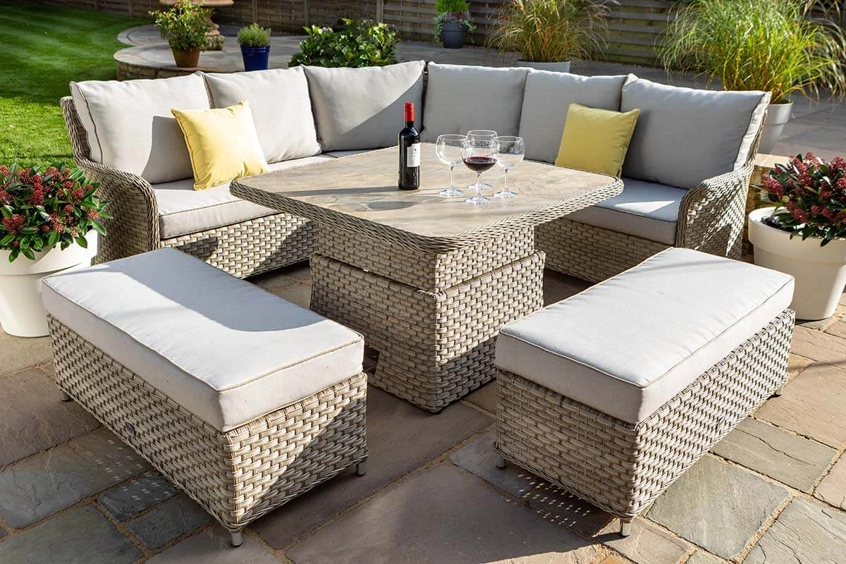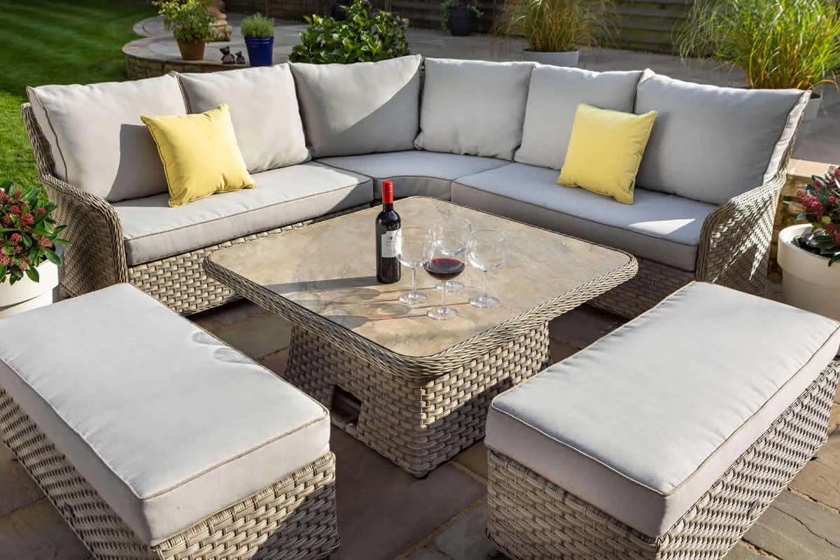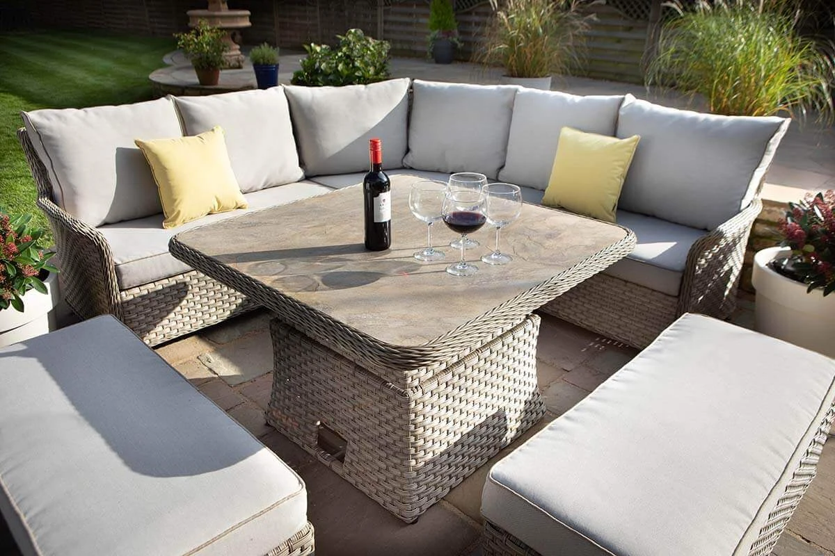 This Hartman Heritage Grand Tuscan Square Casual Dining Set is spacious, versatile and fantastic for entertaining guests. Whether you’re having a sit-down meal, a couple of drinks at the weekend or just a chat over a cup of tea, this furniture set has got you covered. It has a height adjustable table, with a stunning ceramic Tuscan glass top, which quickly and easily converts from coffee table to casual dining table in seconds.
