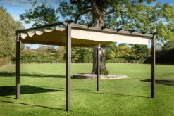 The included top canopy is weatherproof and can be attached or removed as and when required. Further shade can also be added to the pergola with additional curtains (sold separately).