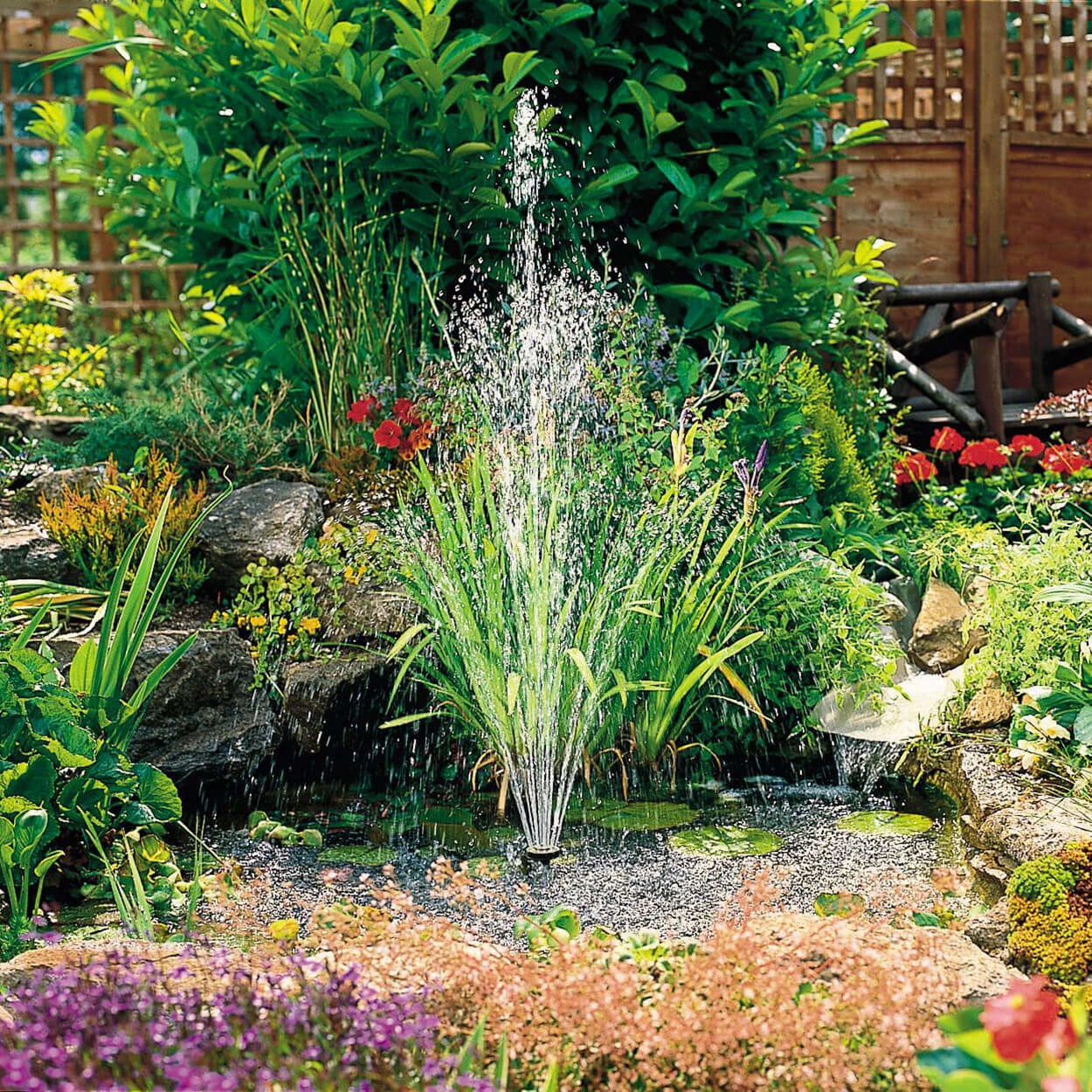 All Cascade listed on garden4less come with a selection of distinctive spray fountains and this pump also comes with a bell jet.