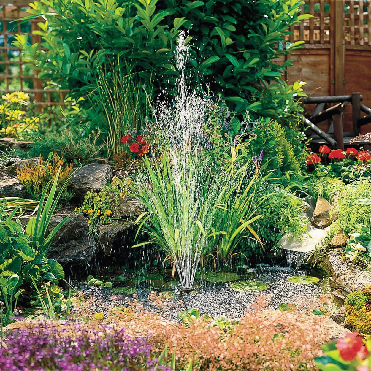 All Cascade listed on garden4less come with a selection of distinctive spray fountains and this pump also comes with a bell jet.