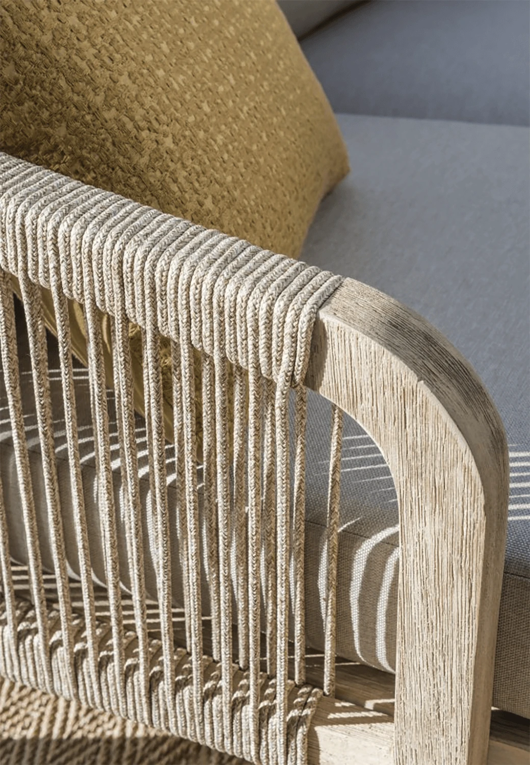 As part of the Cora Mix and Match range, you can create your perfect set with this comfortable and contemporary 3 seat sofa. Made from FSC certified Acacia wood, the frame is sturdy and has durable rope detailing on the back and sides for additional comfort and support.