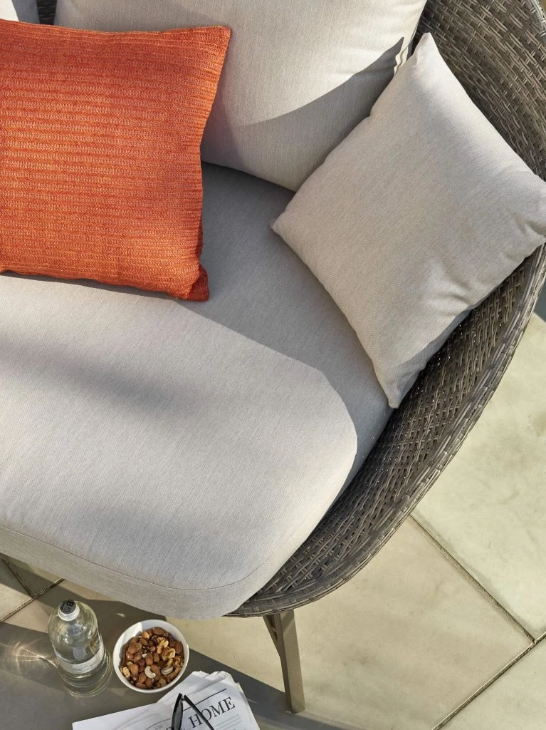 - Ash grey, flat wicker with stone cushions