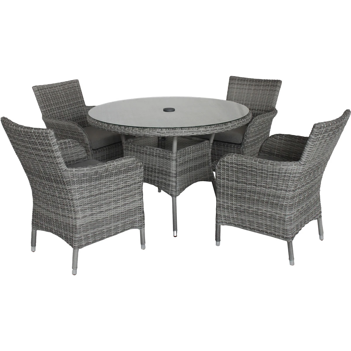 Enjoy dining in your garden with the LG Monaco Stone 4 Seat Dining Set with 2.2m Parasol. This set features four cushioned weave chairs, a round table and parasol that come in an attractive pebble colourway for a contemporary look.